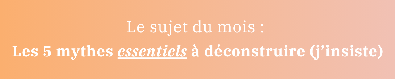 Donc aujourd’hui, je vous donne les 5 mythes principaux à conscientiser, juste pour se donner le choix de de les détourner si on le souhaite 🧡